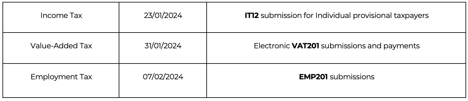 3. Provisional taxpayers must submit their 2023 income tax returns to SARS by the 23rd of January.
